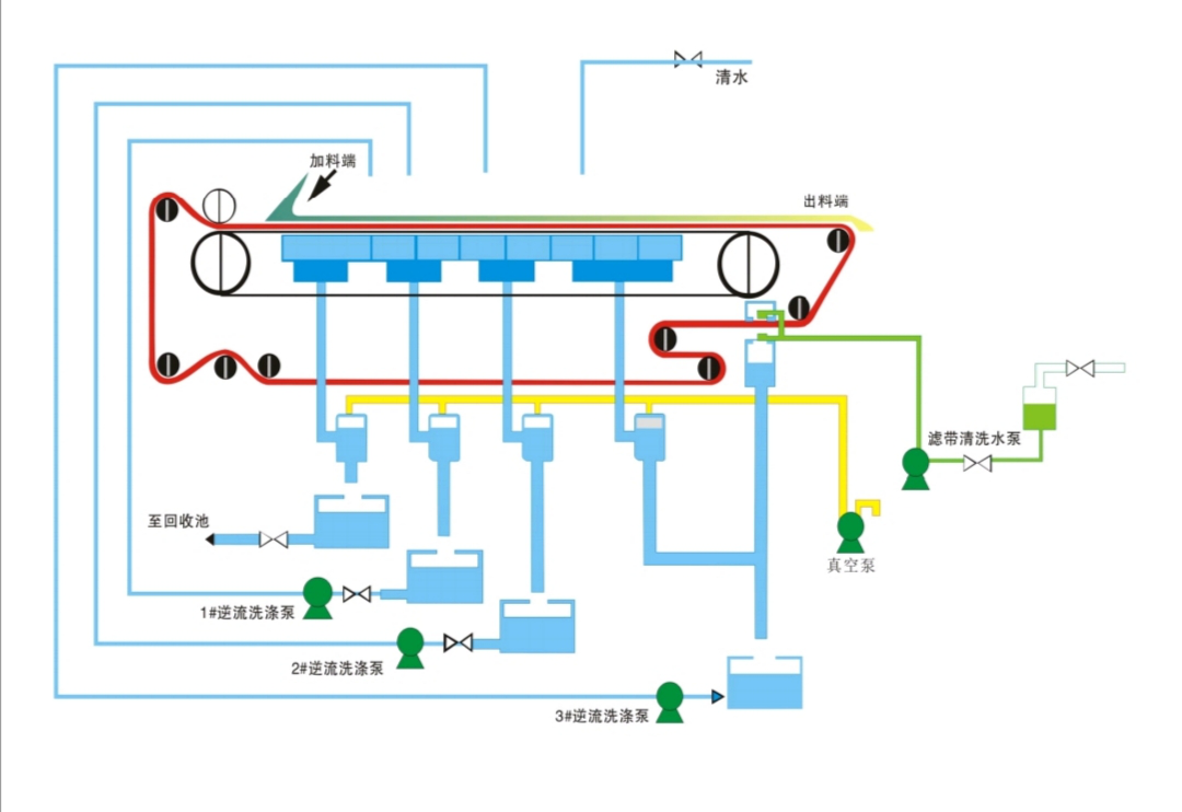連續(xù)濾布洗滌,保證穩(wěn)定的滲透性和過(guò)濾效果。